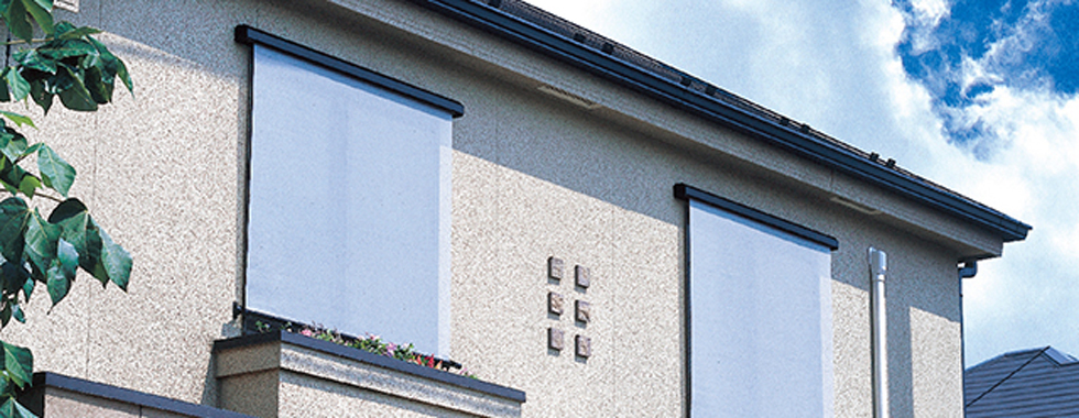電動の外部ブラインドは窓の外で光を遮るために遮熱効果が高い 強風時には自動で収納される イエタテ